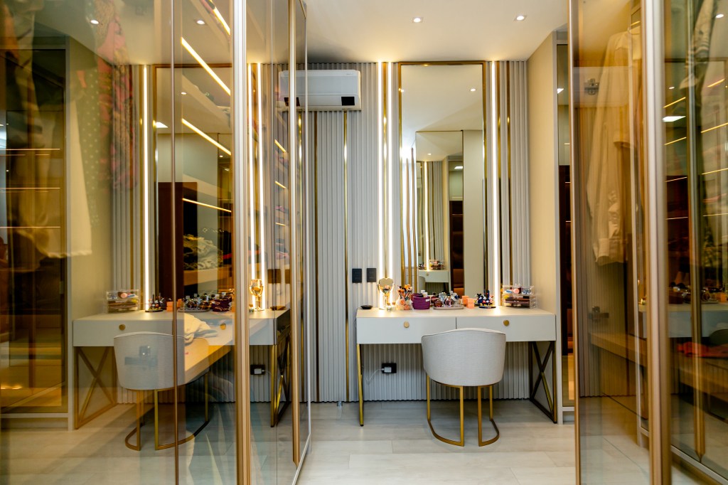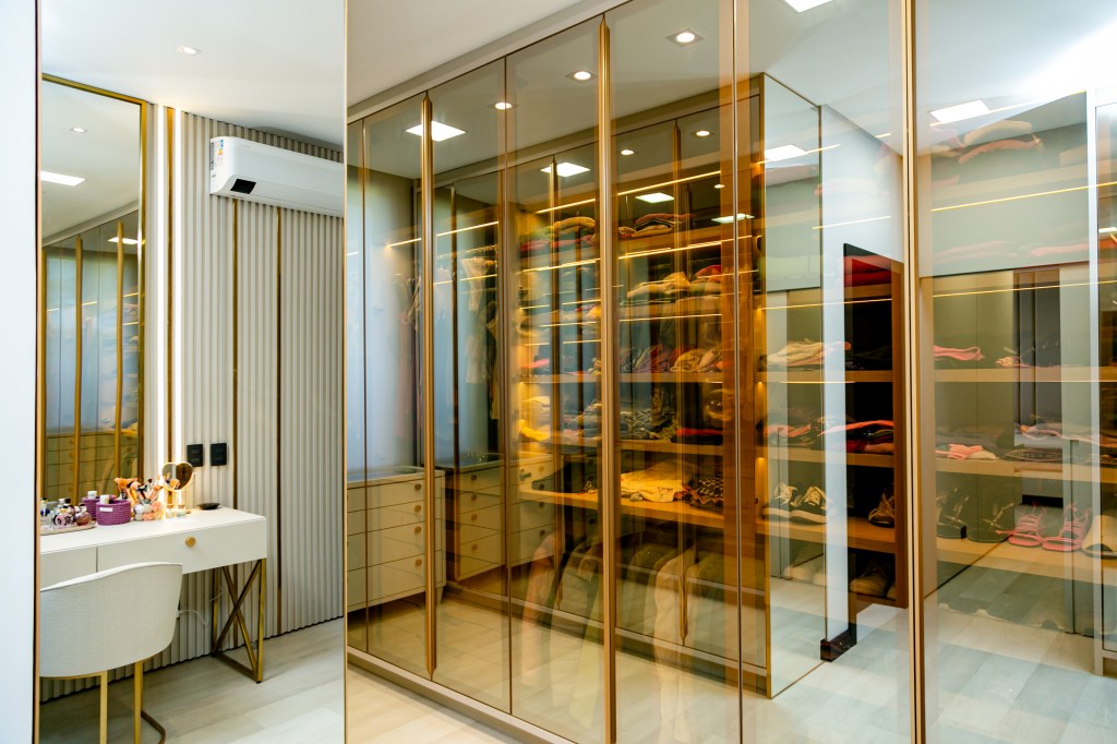 O closet, por sua vez, vai além da organização. Ele reflete praticidade e sofisticação, oferecendo um espaço otimizado para o seu dia a dia. Com um design inteligente, tudo fica ao seu alcance, de forma harmoniosa e elegante.
